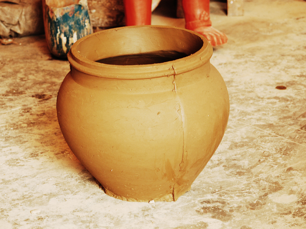 The image shows another example of a form that has been just dismantled from the mould. This form of a pot will then be used for detailing and finishing.