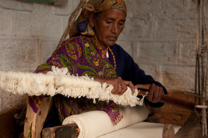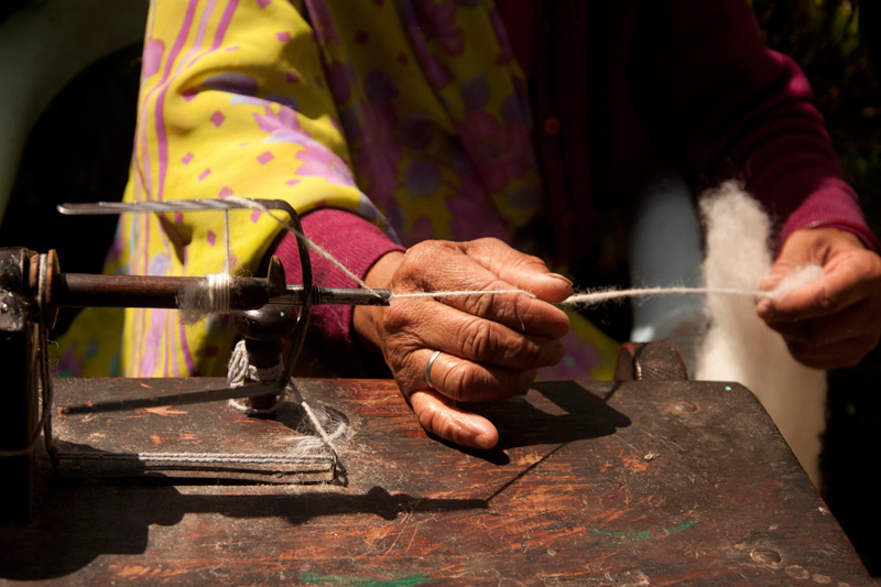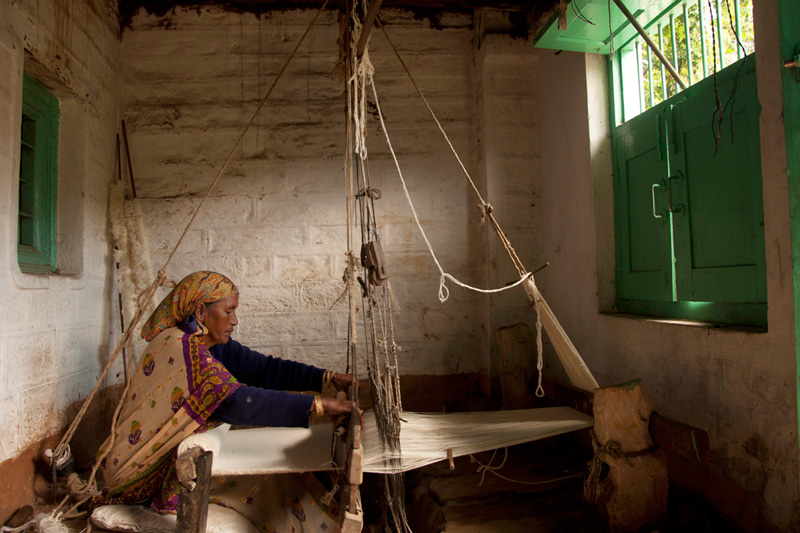 Thulma blanket weaving is an important source of income for the displaced Tibetan Community. The foundation of the blanket weaving is done by cotton thread. The wool is bought from, Tibet and Dharchula by Gandhi ashram khadi uddyog (NGO). The processed wool is provided to the villages by the ‘NGO’ to weave the blanket.