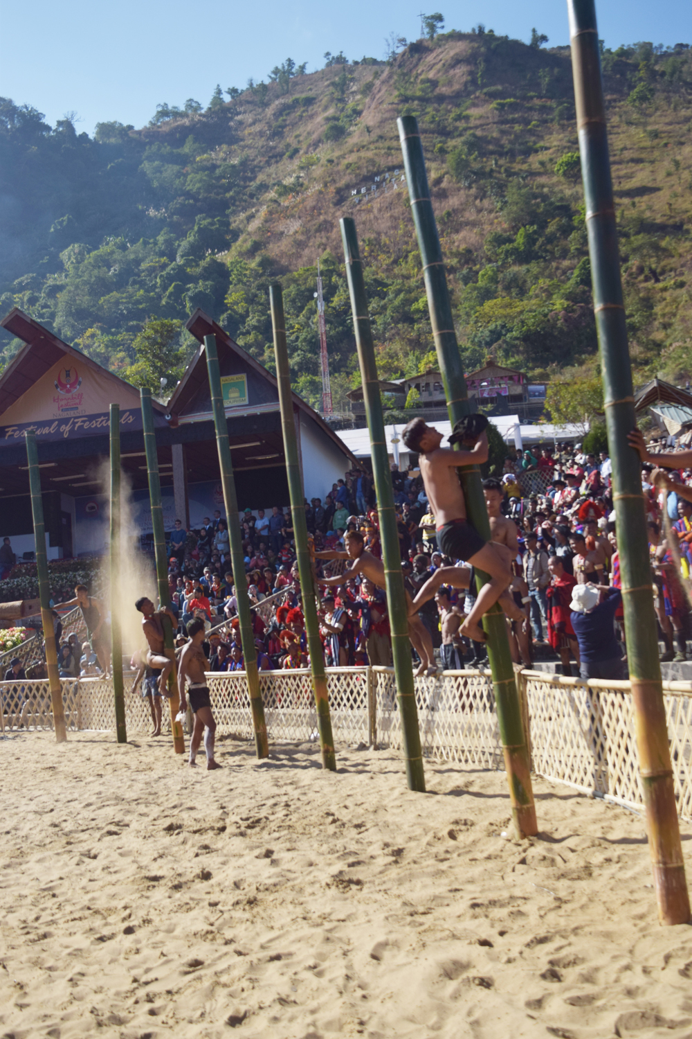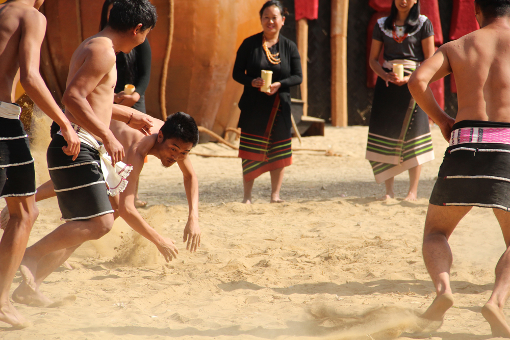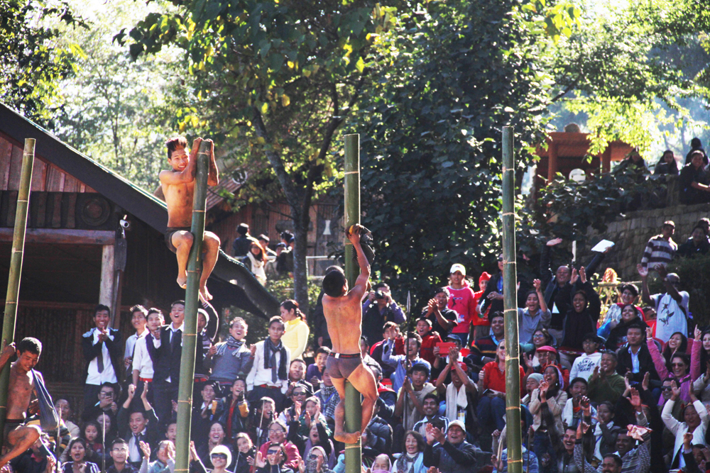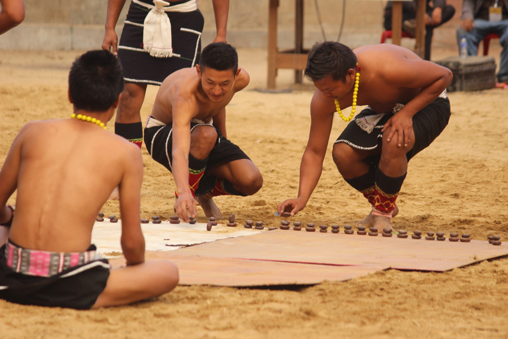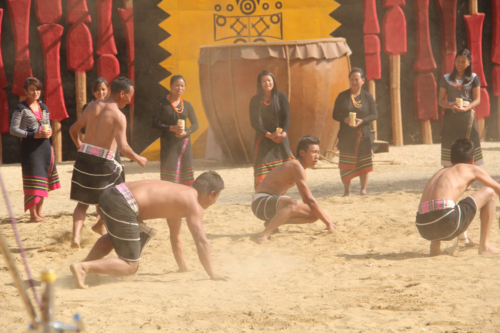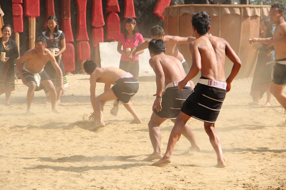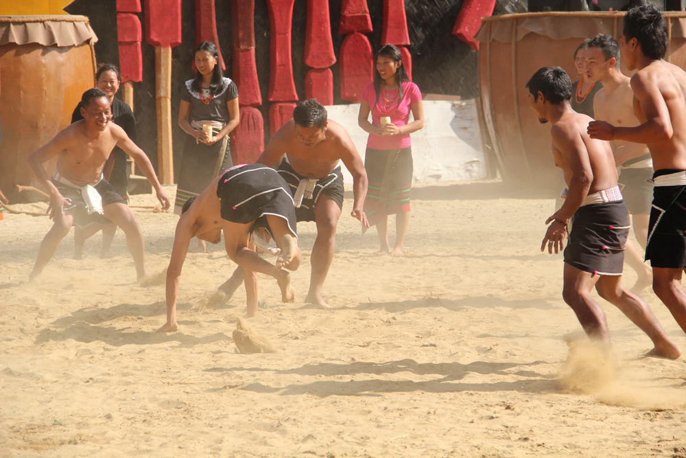 There are many indigenous games played among Naga tribes. Like cho-cho, grease bamboo climbing where they use the mustered oil and yalk fat on bamboo pole and players with the greased body have to climb on the bamboo pole. Like these there are games played just by men and some by women to show their muscularity.