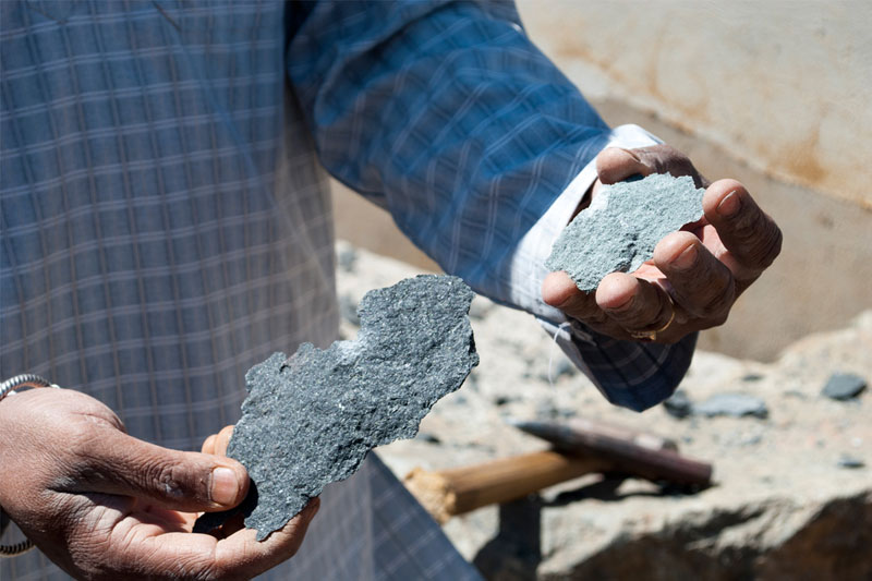 • Final finishing of the surface is done by carborundam stones (Chane Kallu) & final polishing is done with water and emery papers. If the sculpture has to be painted in black, it is done with the colours which are extracted from local fruits, as sarkai, annabare and kenbabari (dry fruit) - these raw materials are heated, melted and used as colour pigment.