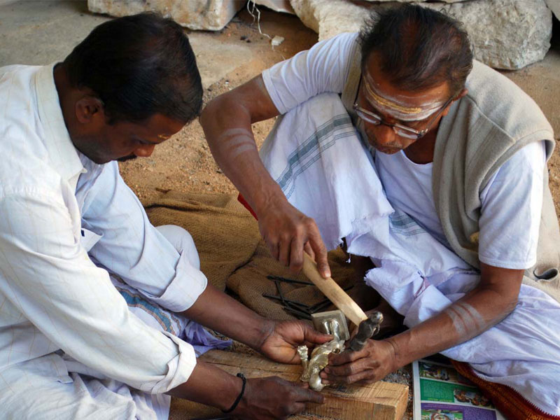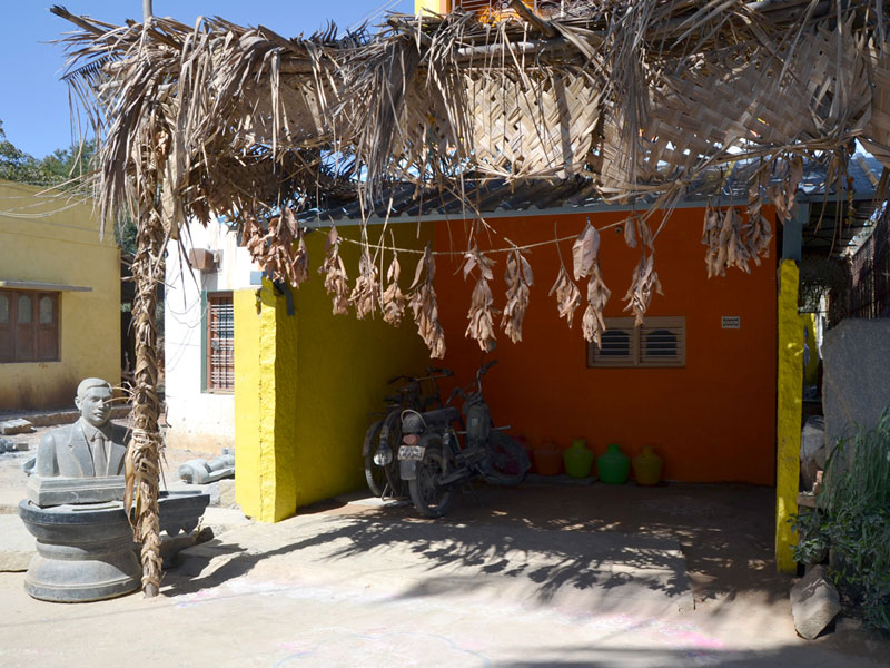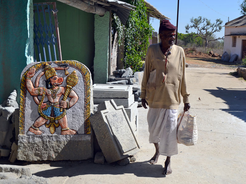 The village Shivarapatna is named after Shivarama who was a palegaara / caretaker ruler who encouraged the art of stone carving. The tradition started with Basavalingacharya (the grandson of Shilpi Janakacharya, and a well-known sculptor in his own right), who was encouraged by Shivarama, to stay on at this village 1,000-1,100 years ago. Basavalingacharya’s descendants still live in Shivarapatna, practising the Shilpa shastra tradition that has been passed down generations. Shilpa shastra and Vastu-shastra are the main basis. They consider themselves to be descendents of Vishwakarma, the architect of the universe, and largely belong to the Brahmin community. Around 75% of the whole population works in the stone carving industry making it a major hub of stone and rock art. The major occupation of Shivarapatna are tailoring, farming, carpentering, labour work, steel work, stone carving and vegetable vending.