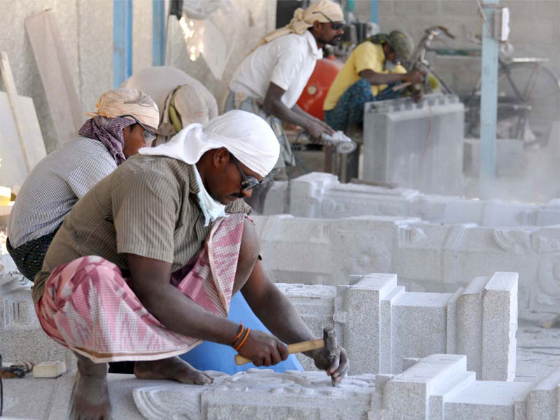 The craftsmen have adapted to new types of raw material such as re-enforced plastic to make life size statues of politicians and saints. They not only make statues in stone but also carry out metal casting processes in their in-built foundries to meet requirements of the market. The craftsman makes his own polishing tools to fit different sculpting needs to retain the familiarity of touch with the raw material. The craftsmen make polishing tools out of sandstone of varying grain density, size and grips. This allows him to access deep corners and crevices easily. External material such as sandpaper needs to be handled with care and have a short shelf life compared to sandstone. The tools are designed to ergonomically fit their hand dimensions and require little effort to carve.