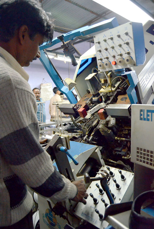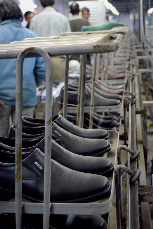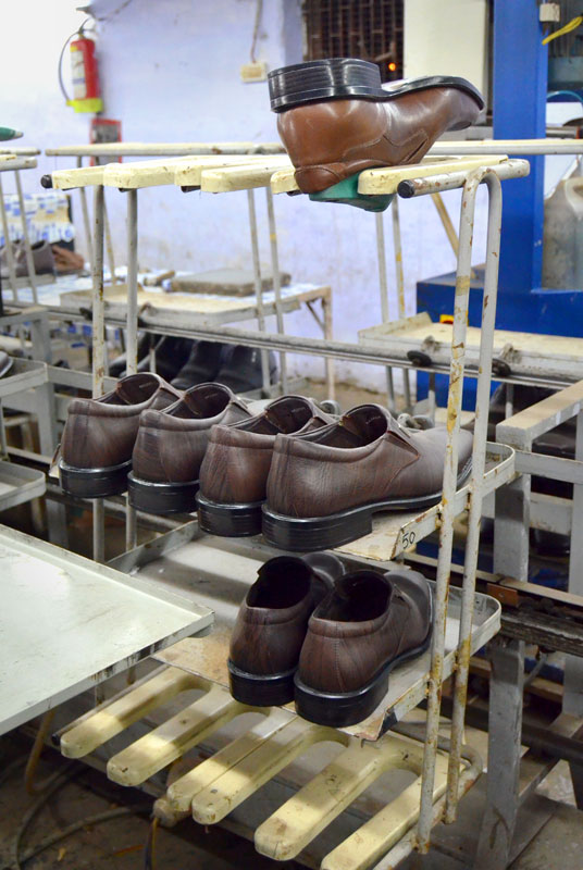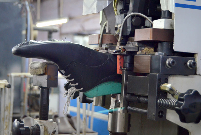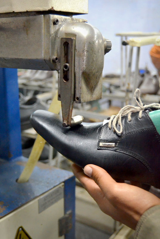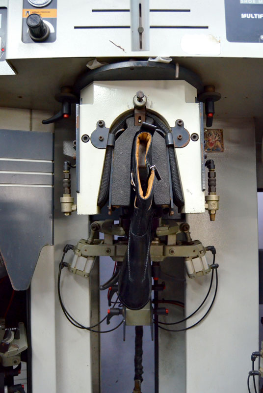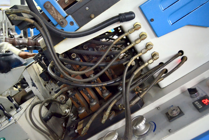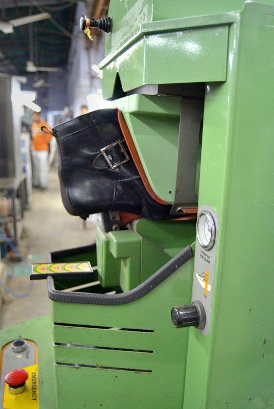 Changes in the footwear manufacture process have brought abouttraceable and tangible mechanization in the industry.Though these machines still need men to make them function, they have tremendously brought down the workload and multiplied the production. Each machine is taken care of by a specialized person who performs the task with it and passes the shoe on to the next - almost like an assembly line production. There are machines to do everything from pressing the lasted shoe at the right temperature and pressure to sterilizing it, moistening it, polishing it etc. The finish and detailing of these machines are remarkable.