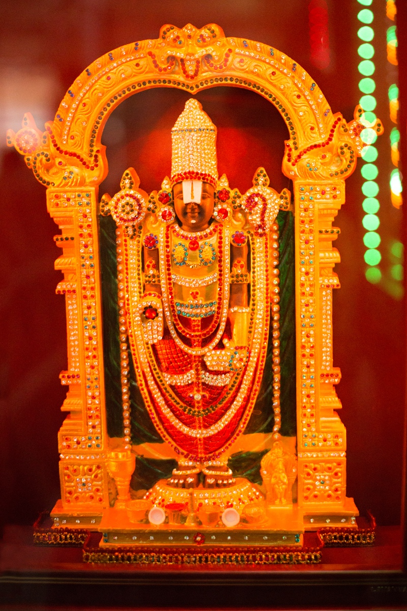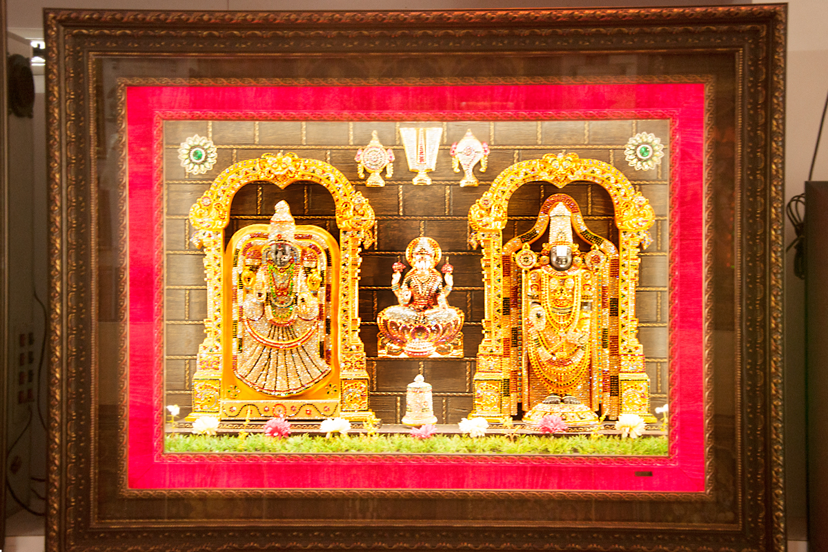 Most of the tea shops at Srikalahasti had the similar type of the serial lighted, with different coloured stone studded frames with the idol of the Lord Tirupati. Srikalahasthi is one of the major place in the Chittoor district of Andhra Pradesh, where most of the stone studded frames of Lord Tirupati are made and produced ion large numbers. These are mostly decorated with the deep greens, chalk white, vivid reds, turquoise blues and also more use of gold foil, inset glass beads that makes these types of frames a unique one. The use of the semi-precious stones and the different art work makes it a colourful one compared to others.