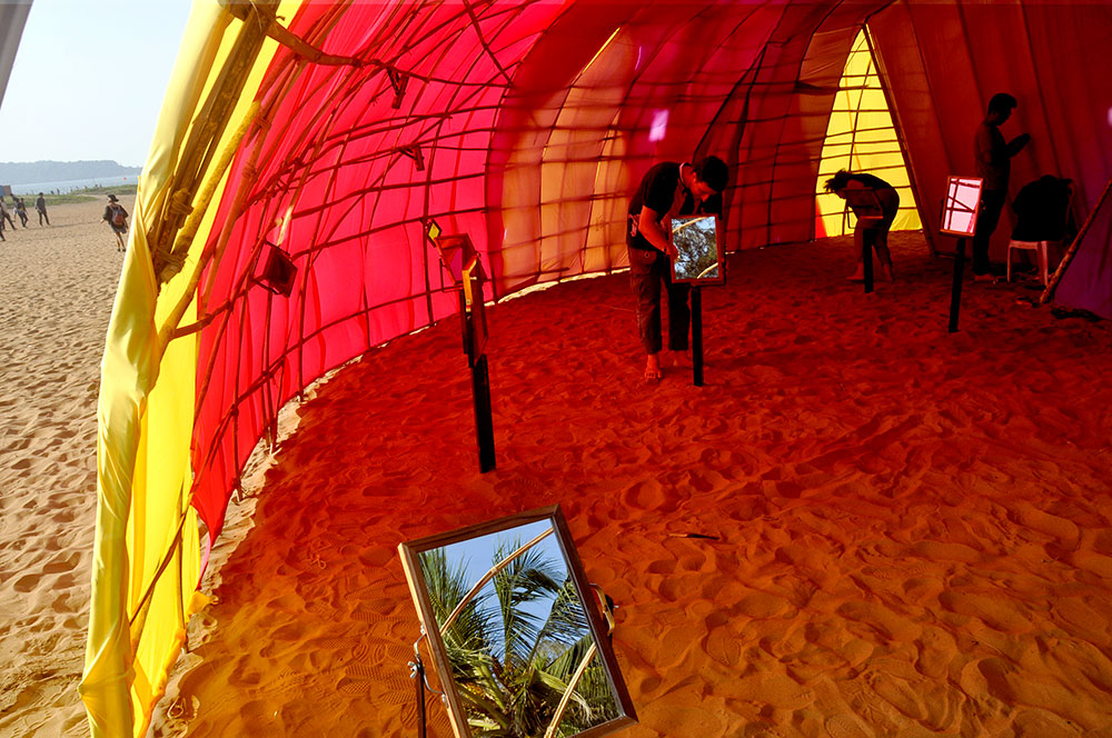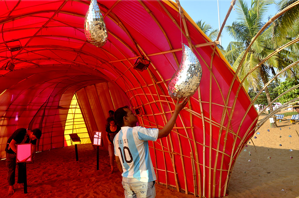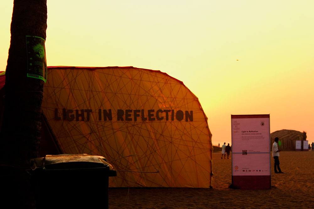 This installation was about Exhibiting Reflection of light. The installation consisted of a source of light and arranged set of mirrors and an endpoint where all the reflections were gathering. The end point reflected the installation in colors of rainbow. Visitors were excited to trace the path of the reflected light through the mirrors.