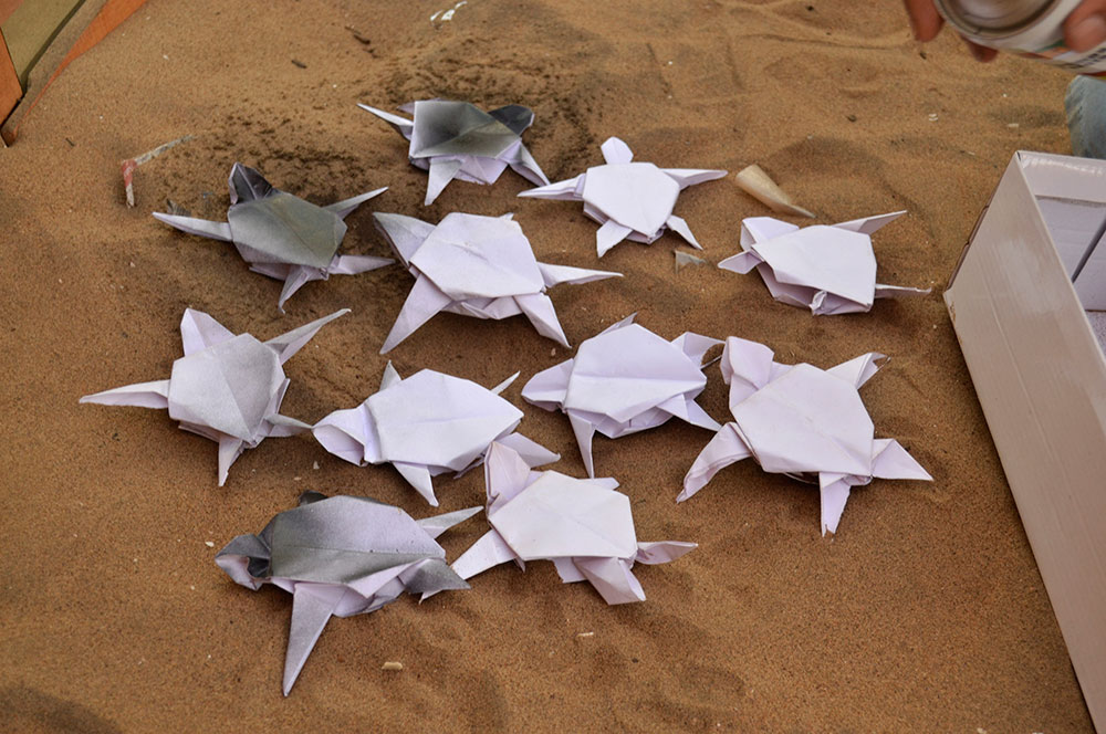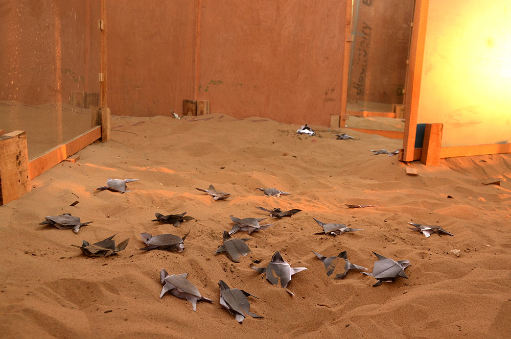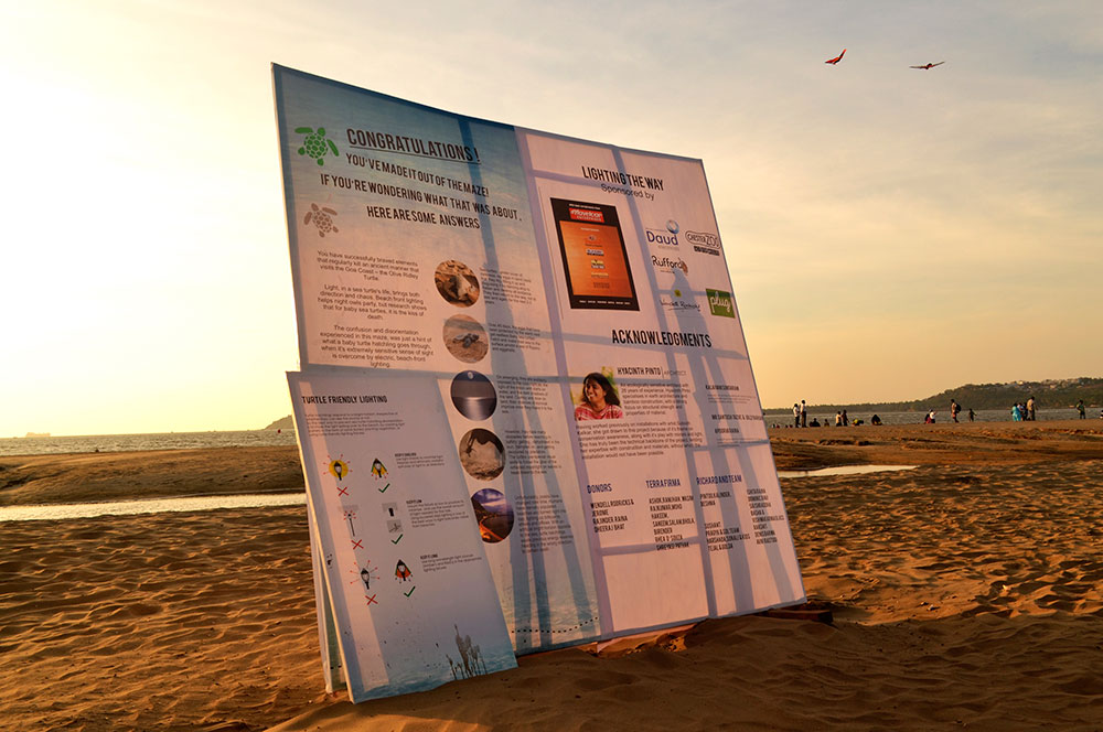 This installation was convincing example and demonstration of importance of life in one’s life. Beach light is used by us to arrange different parties and events but because of this, baby turtles are getting attracted towards them and naturally following the street light (instead of moon light) they come on streets or shore and this has been responsible for death of many baby sea turtles.