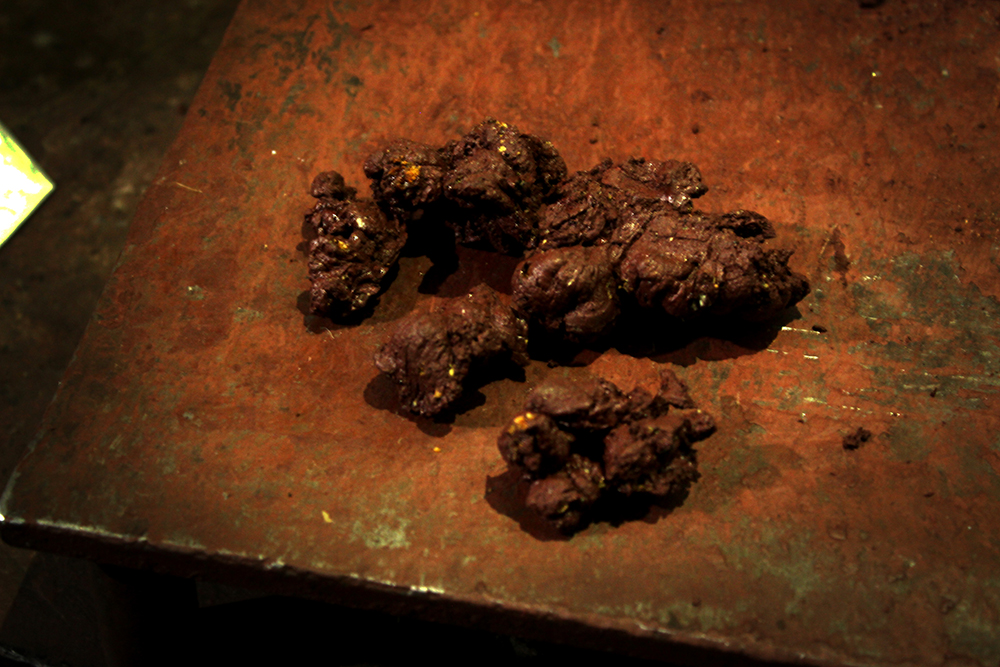 Once the silver embossed image is ready it is taken for filling and framing. The purpose of filling process is to prevent the embossed image from getting dents and give tenacity as well as longevity. The filling process is done by heating copper plate and arranges lac on the copper plate in a square format. Once the lac is fired well into a particular consistency it is spread evenly with the help of metal rod. Then the embossed silver image is placed right in the center and firmly pressed, it helps the excess lac to come out. The excess amounts of lac are removed. Afterwards the whole composition is removed from the fire and set aside for cooling down. Once the composition is cooled the edged of the copper sheets are trimmed off into the similar shape of silver embossed sheet. After wards the edges are folded twice and overlapped on to the embossed silver image. After overlapping is done the edges are hammered carefully to provide grip. Once the copper overlapping is done the Taak is ready.