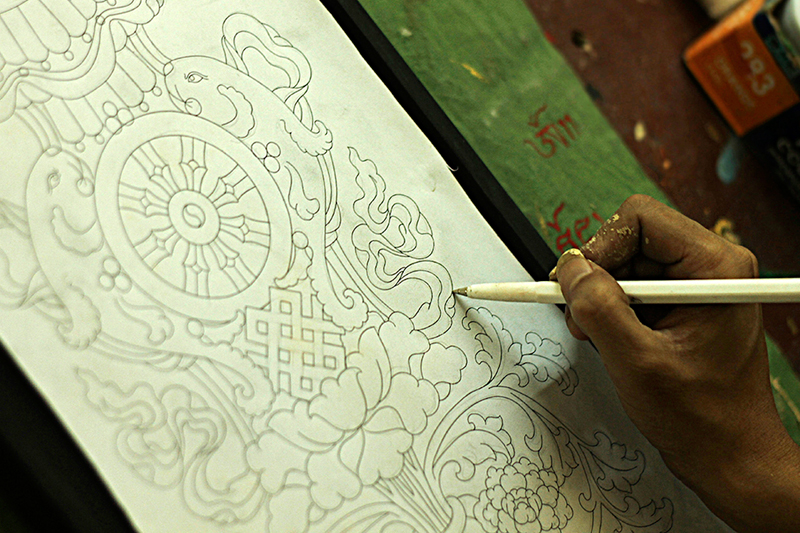 According to the artisan these are some of the well-known Design themes in Thangka painting: