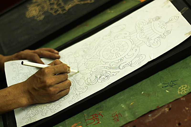 Tibetan wooden painting requires selection of fine quality of wood, which is shaped into desired form. Due to high durability, teak or pine wood is used for expensive items which are exported whereas marinda, kel and plywood is used to make the items which would be used locally.