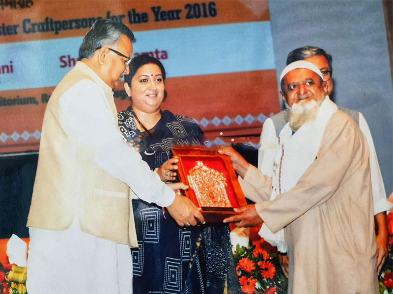 Rogan Artist, Padmashree Mr Abdul Gafur Khatri won many awards and recognitions. His recent achievement is winning a certificate from the World Book of Records, London. He has participated in making the longest Rogan art on fabric with dimensions 850 square feet for the G-20 Sumit at the village Nirona of Kutch from July 7th to 10th, 2023 which was organised by the Government of Gujrat. The fabric has 580 Rogan art designs completed in 21 Hours by Mr Abdul and his family members.