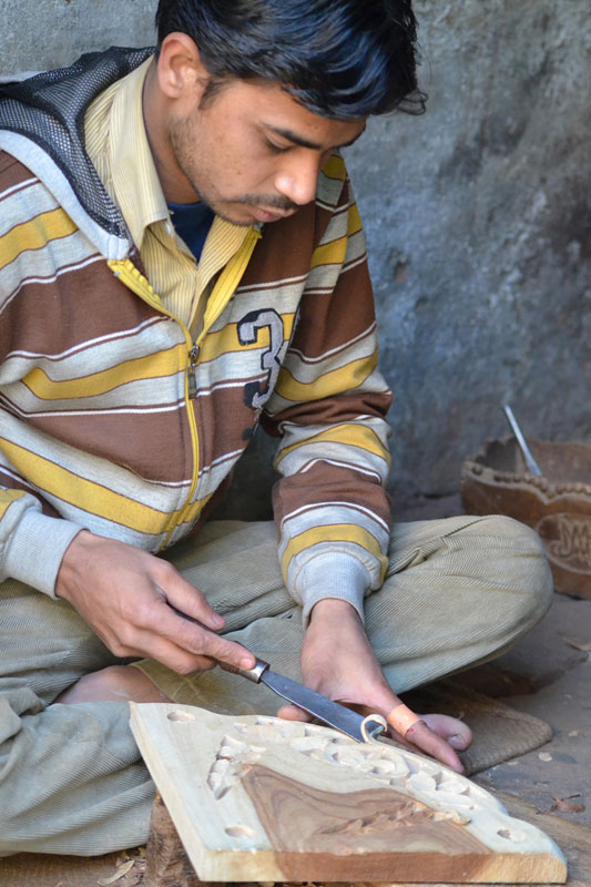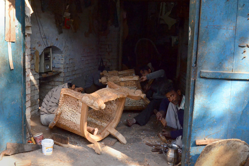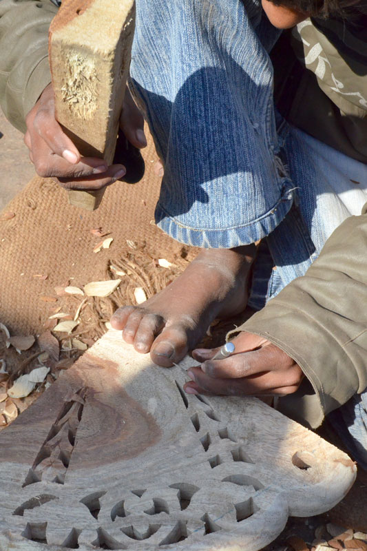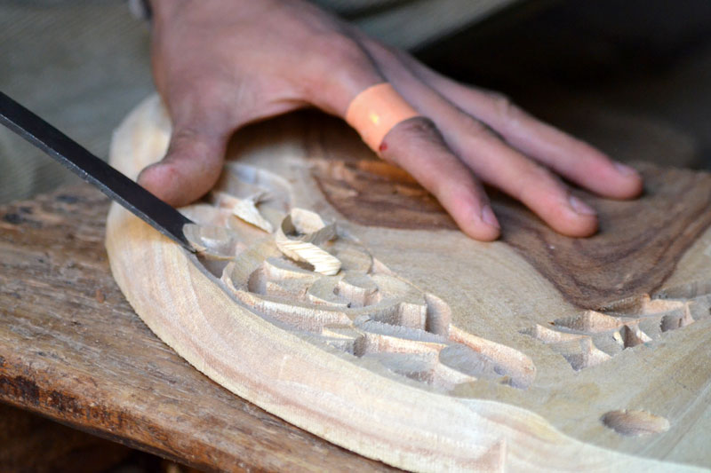 Carving completely by hand makes for a very fascinating sight. Though the instruments used are extremely simple (saw, plane, fine-grained hard stone, chisels etc.), the carvers use them aptly to produce some astonishing results with minute details, keeping the intricacies and subtle light and shade effects, every desired curve, expression and texture. Young kids help their fathers in carving, as this is the most time taking process out of them all. Sometimes, this is also to bring in more money.