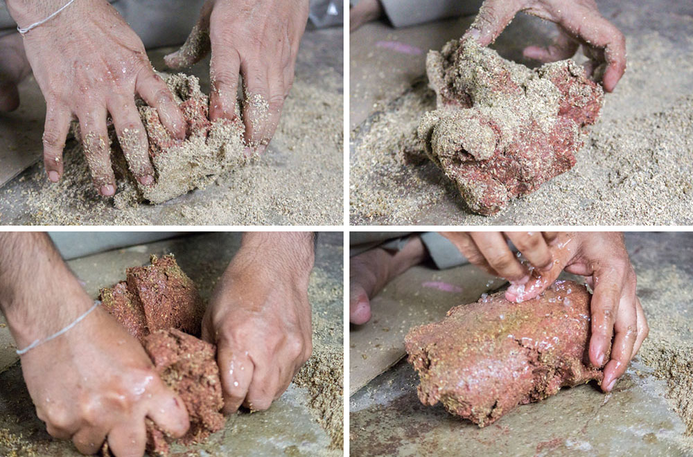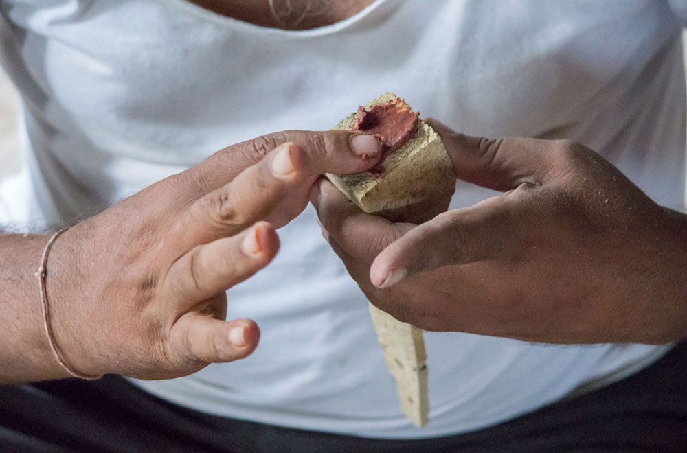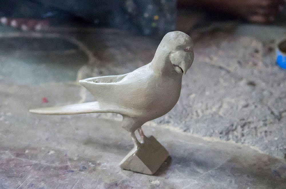 Nirmal wooden toys are made of a softwood called poniki or white sander. The seasoned wooden logs are bought and cut into small wooden planks using a cutting machine. Further, they are cut into smaller pieces as per the requirement using the saw tool. These wooden pieces are further shaped using a file tool. The shaped wood pieces are further attached using glue or tightly fixed in-between the gaps. Upon the basic structure, the paste is applied. The paste is a mixture of sawdust and tamarind seeds that are ground well and kneaded together with water to get the required consistency. This paste is applied to the basic structuring of the wooden structure of the toy. Adding this paste to the wooden structure enhances in pertaining the fine curvatures of the toy. Further, this is allowed for drying. Once it is dried, it is sanded neatly and fine details are made. As a final process, the toys are painted and allowed for drying. Thus the Nirmal wooden toys are set ready for the sales.