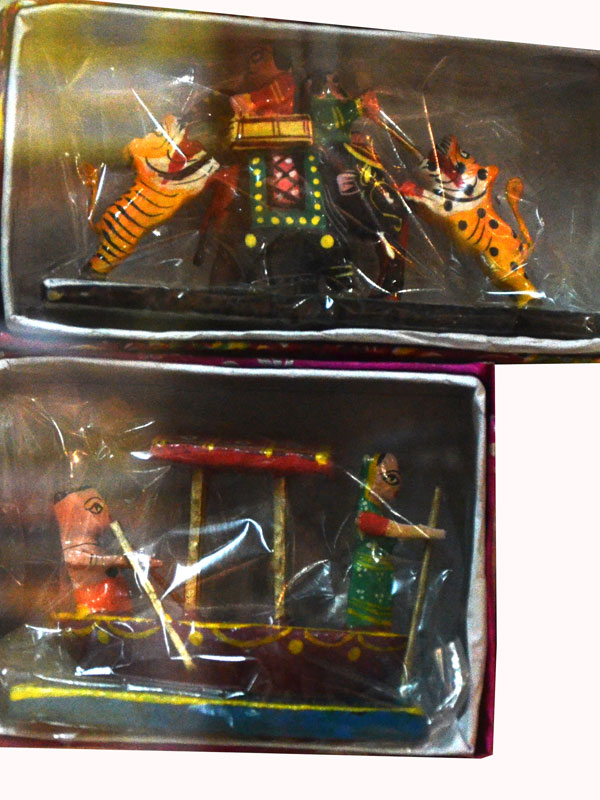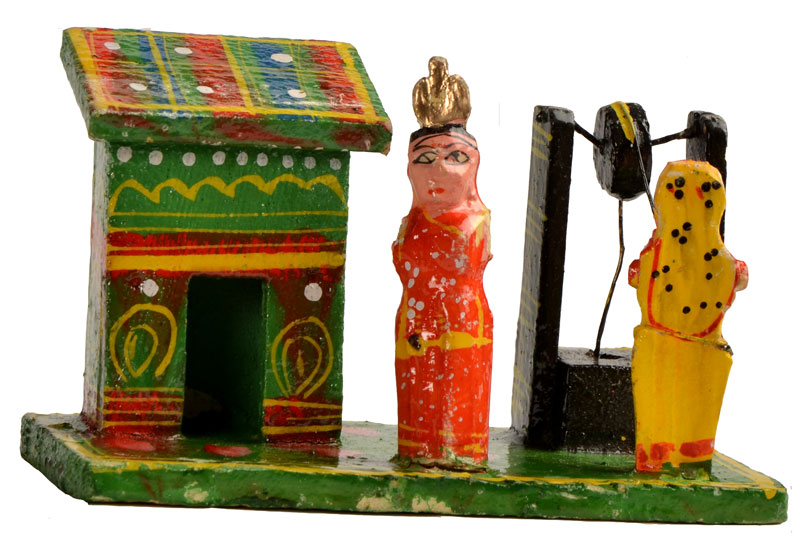 One gets to see the real culture and tradition of India in its villages. Many activities like farming, drawing water from a well, bullock carts, etc. are still thriving in the rural part of the country. Thus, the toys made on this theme primarily show the culture of the rural India which consequently affects the clothing style, patterns, colors, etc. shown in the toys by the craftsmen.